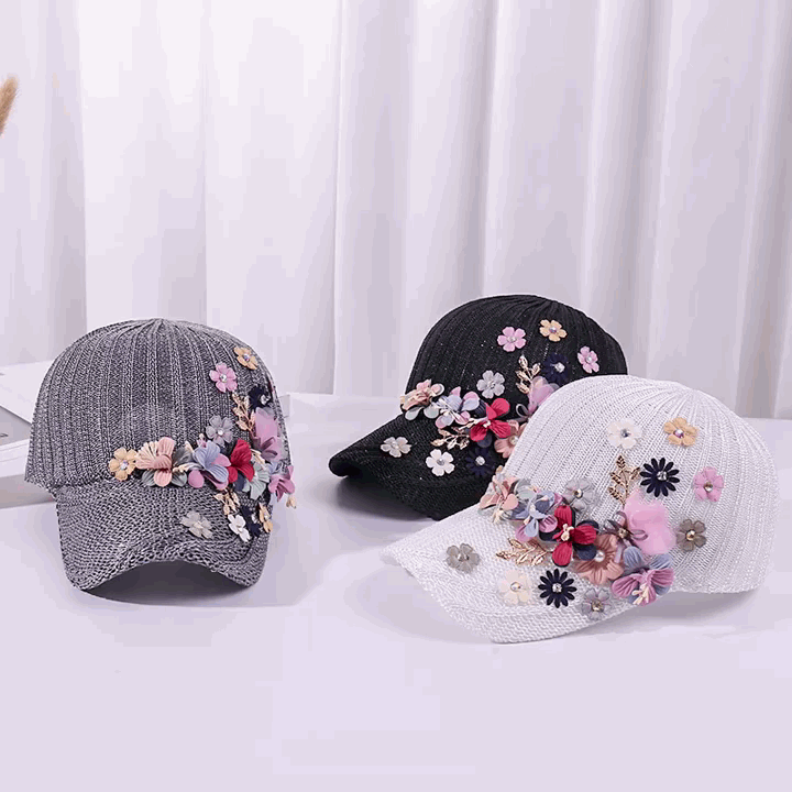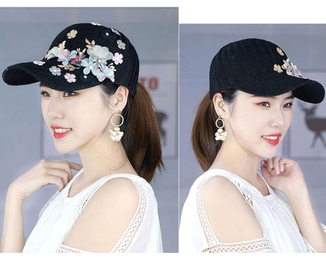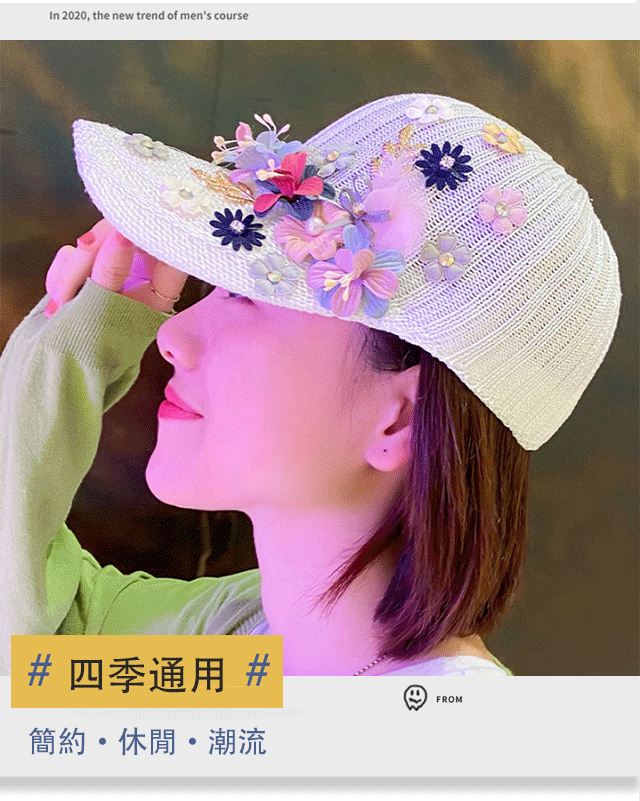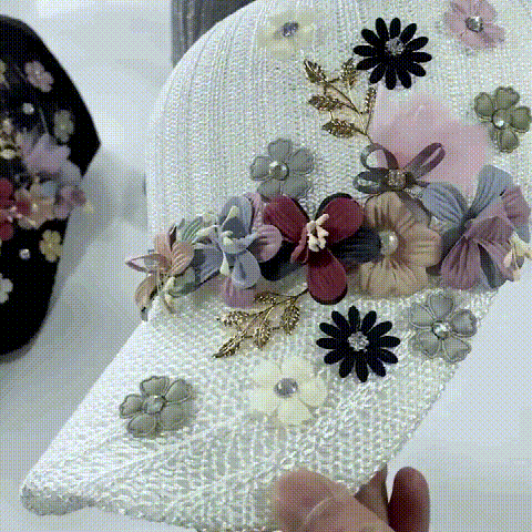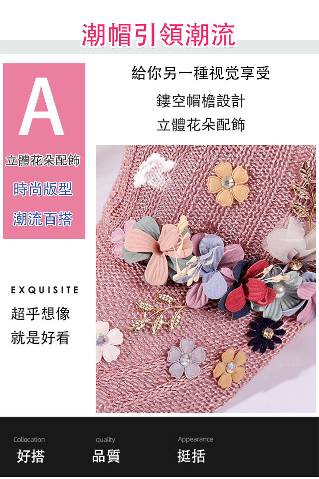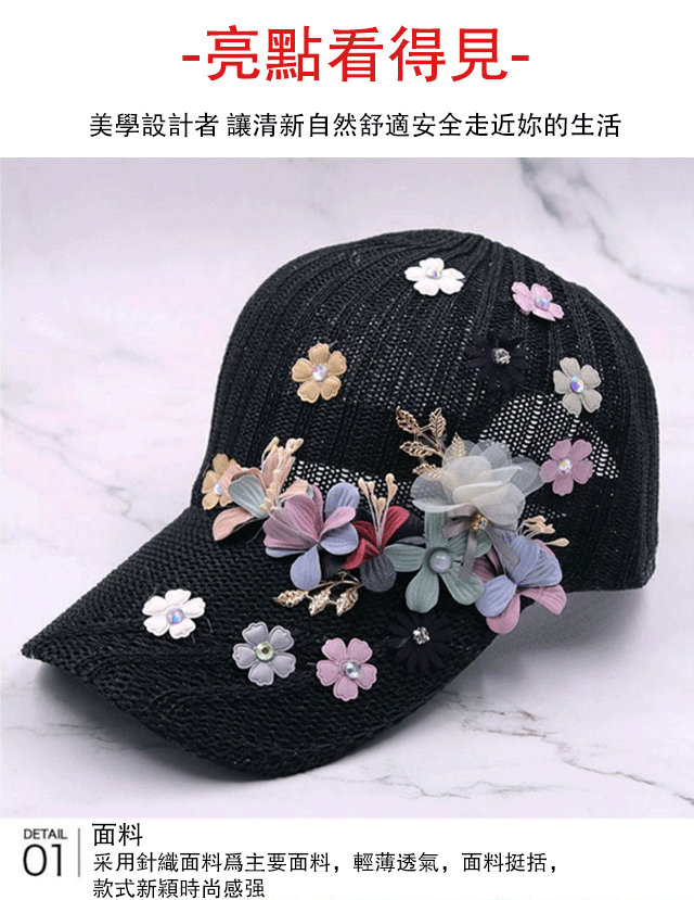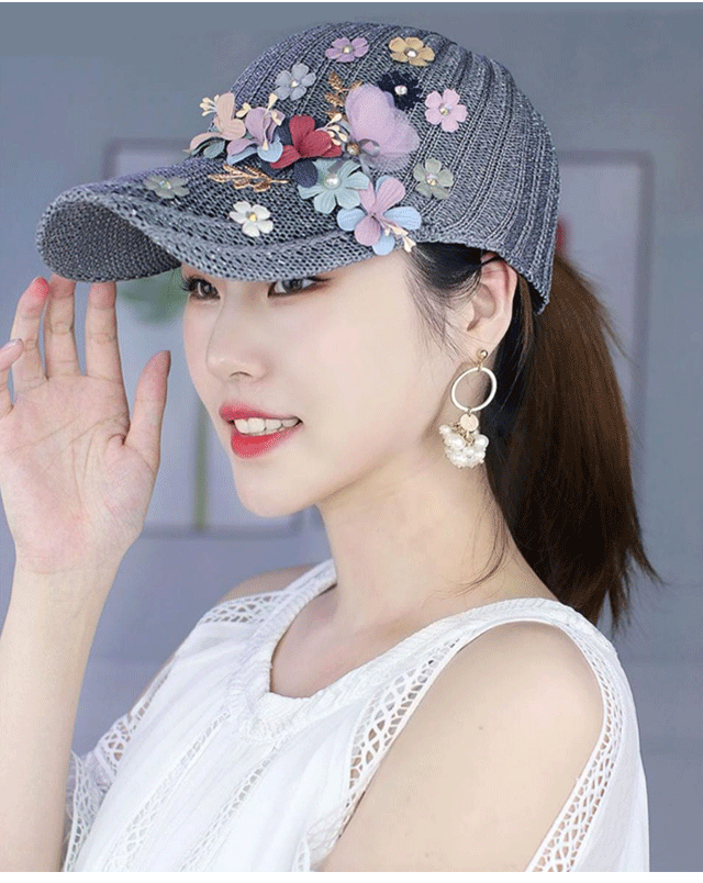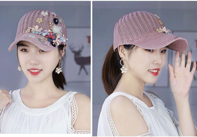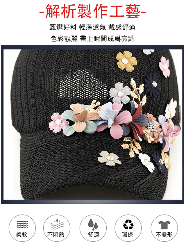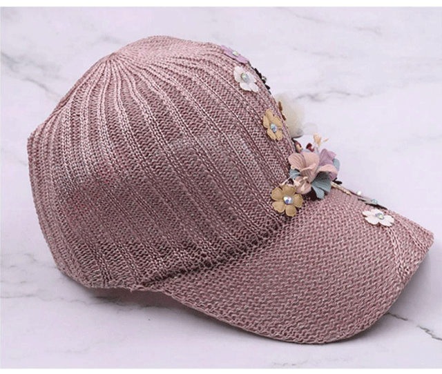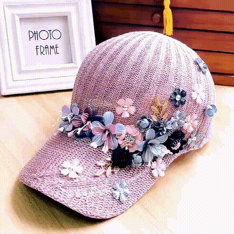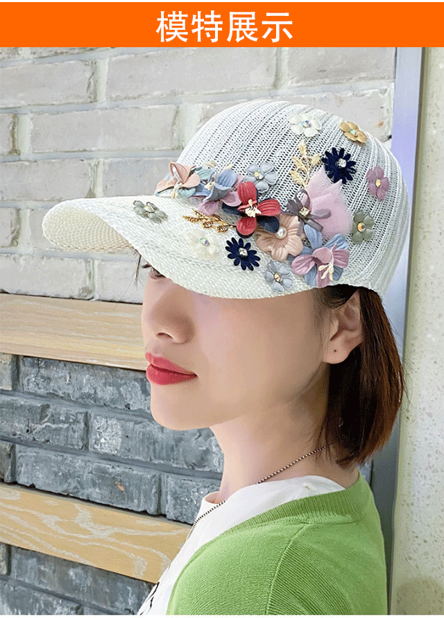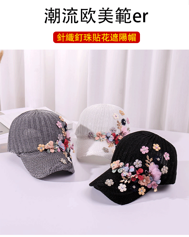 針織釘珠貼花遮陽帽